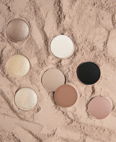 צללית קומפקטית בגימור פנינה מטאלי עם ריכוז של פנינים ופיגמנט אינטנסיבי לצבע עז וברק מרהיב.