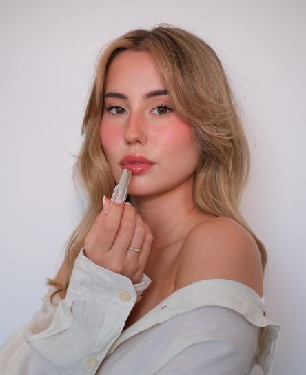 שפתון קרמי ועשיר בלחות, המעניק לשפתיים נגיעה של צבע בגוון ניוד שנבנית בהדרגה עם ברק.